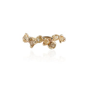 This unruly, meandering vine of fancy cut diamonds is both floral, regal, and rebellious! A rare batch of yellow, amber, and champagne diamonds featuring Pears, Ovals and Cushion cut shapes, has been set in wax and cast in place, allowing the free-hand flow of molten gold spill and swell around the stones in this contemporary setting.