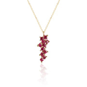 Featuring 11 Princess cut Rubies, staggered and arranged at random, wherever their spirit leads. Cast in place in recycled and refined 14kt Yellow Gold, and hung on one of my signature diamond-cut cable chains that sparkle from clasp to clasp.