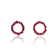 A STUNNING series featuring 4.2 carats of Princess-cut Rubies, mixed in sizes and free-hand set into these eye-catching and lobe flattering earrings.