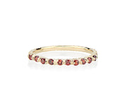 The ring photographed is cast in 10karat yellow gold, an understated personal favorite of mine. The stones can be demi-set, with 45%  coverage half the way around the band, or eternity set - which has stone set the whole way around the band.